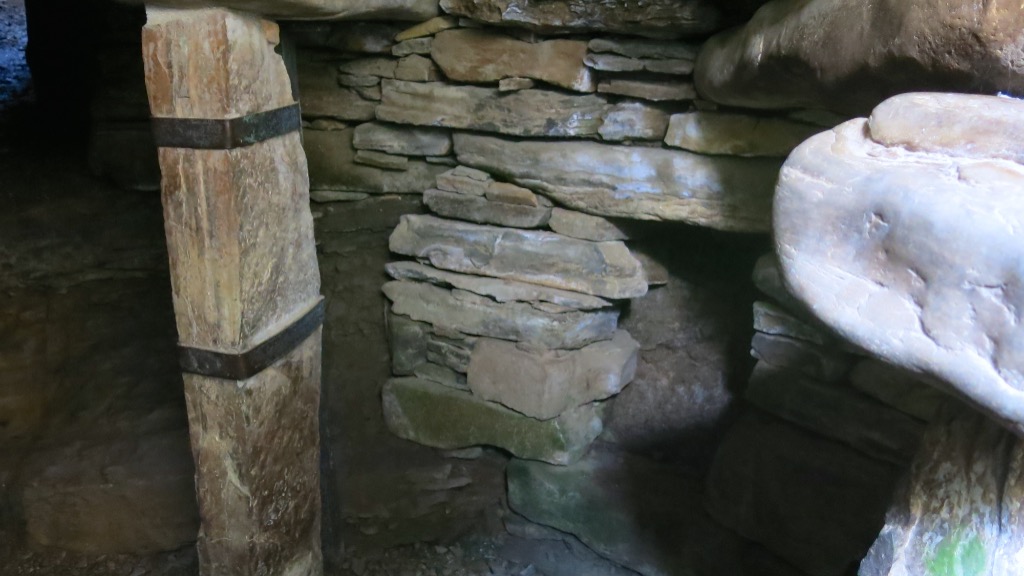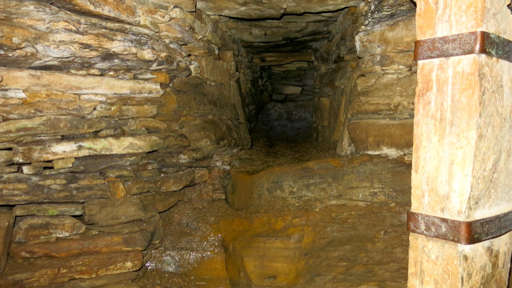 Now to the conundrum….upon excavation, Rennibister earth house was found to contain the bones of six adults and twelve children. Excavations in 2005 at another earth house at Windwick, also revealed quantities of cremated human remains. So were these chambers merely for storage? There is no evidence to suggest anything was ever stored in them and also as you will see from the short video clip and photographs below, access to the chambers is very difficult. So, what was their function? Storage? Hiding places? Maybe the above ground structure was not a ‘house’ at all, as the Windwick excavations suggest. Did they have some ‘ritual’ or religious function, representing a link to the dead? Perhaps they served a manner of different functions over time. Maybe the answer will never be found and I rather like that! They are indeed, fascinating structures !